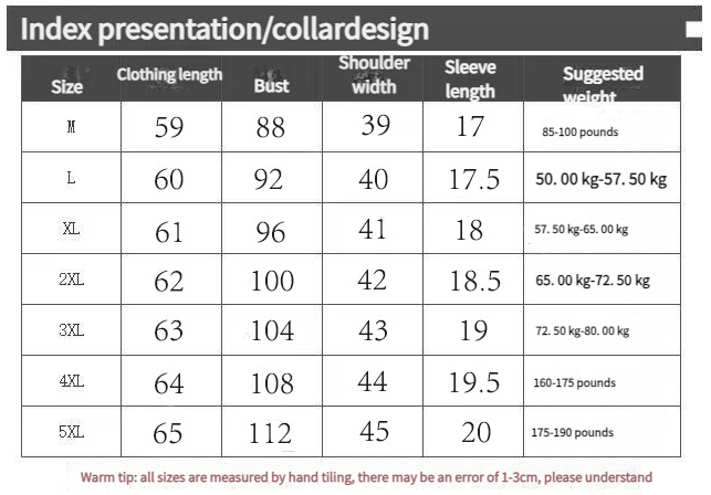 Size Options: M, L, XL, 2XL, 3XL, 4XL, 5XL.