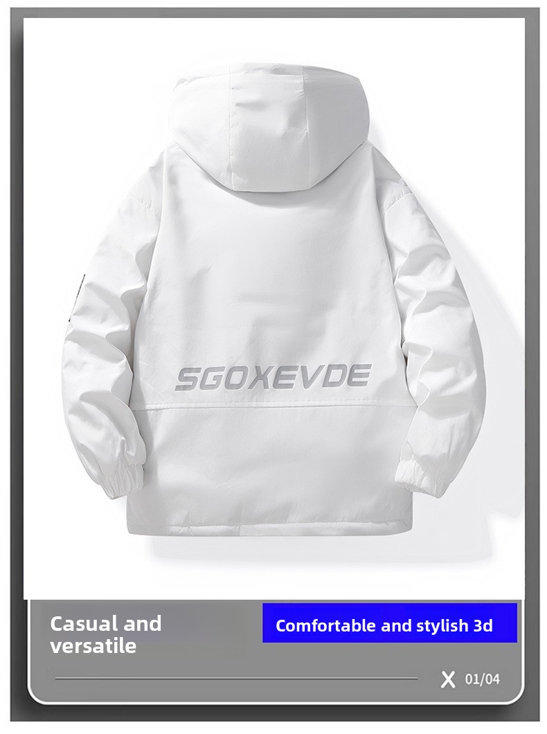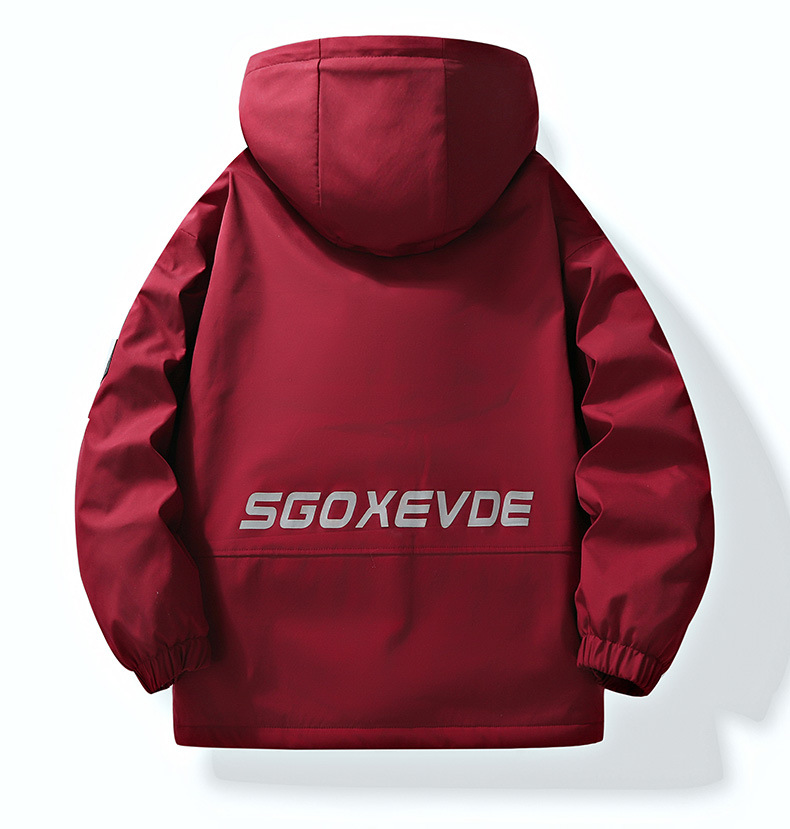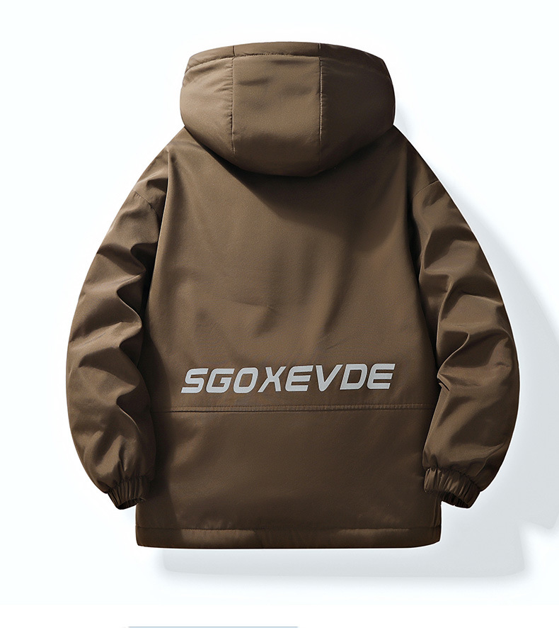 Style: Hooded jacket, collarless, zipper placket, straight hem