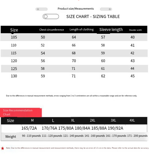 Available Sizes: 105, 110, 115, 120, 125, 130