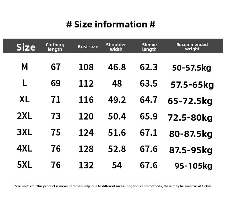Available Sizes: M, L, XL, XXL, XXXL, XXXXL, 5XL