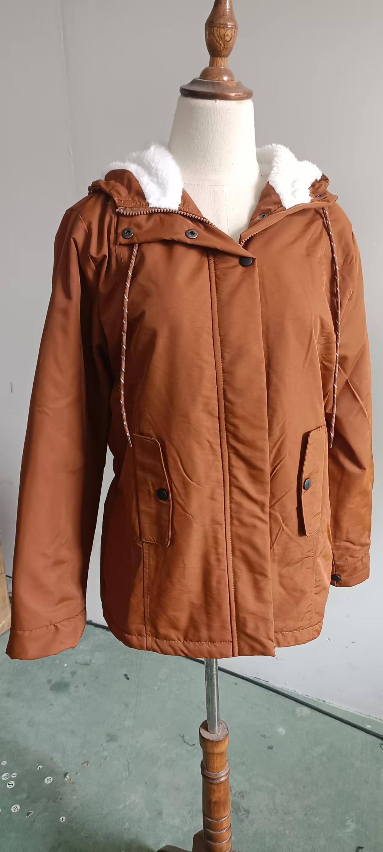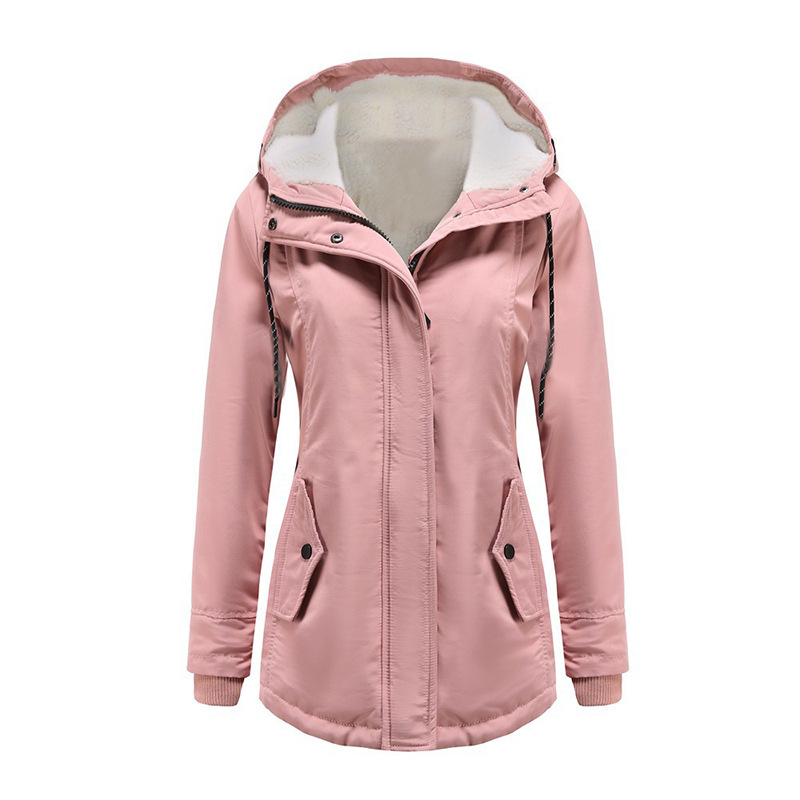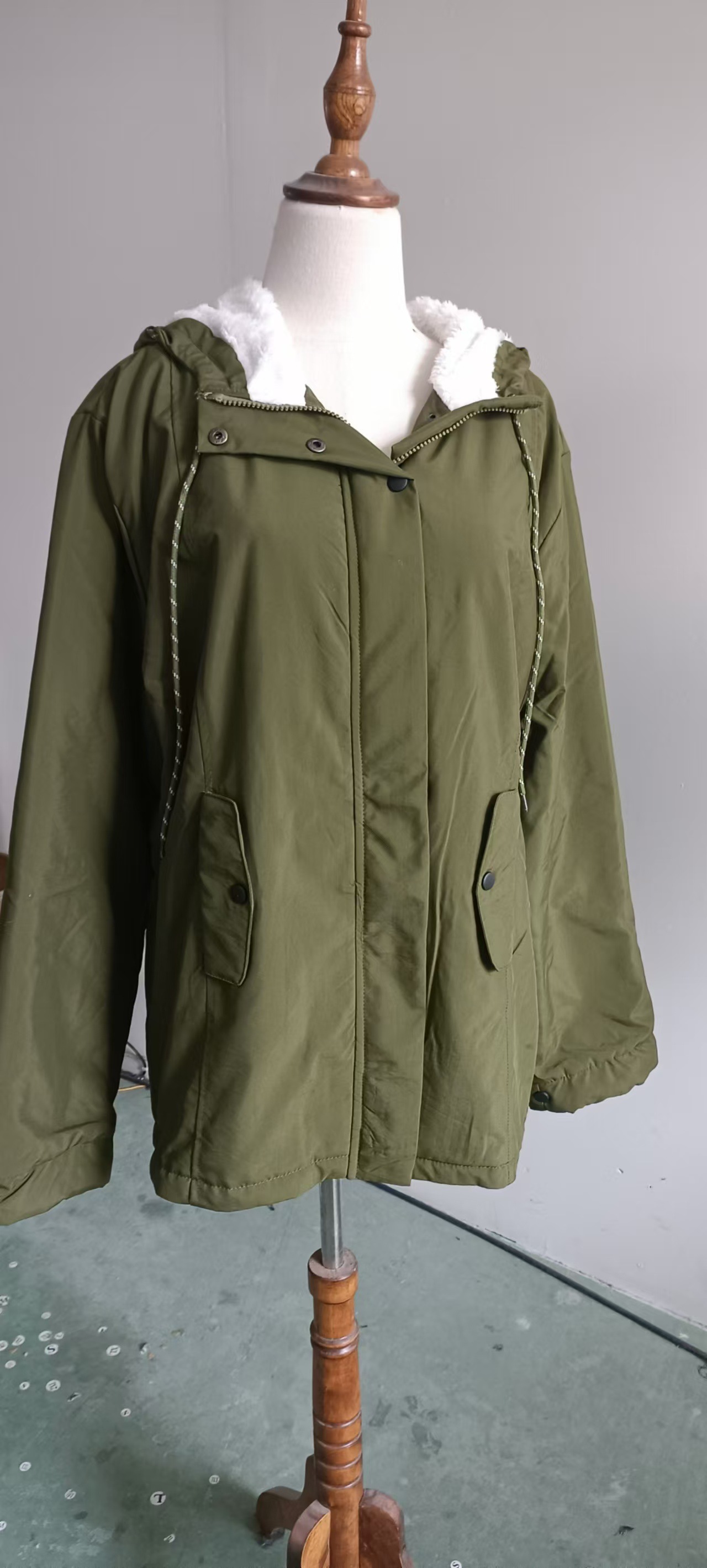 Stylish Design: Features a solid color, zippered pockets, and a hooded silhouette for a modern, elegant look.